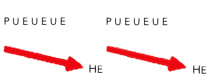 With PUEUE HE you go over the break in the register. You feel it in the larynx; from high to low.