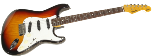 I bought the Squier for 350 guilders in the 1990s. I already knew then that those first Japanese Fenders were well built. I also had a Japanese 57s Reissue Strat (JV00126)* with a large fender logo on the headstock, but I got rid of it, because someone had chopped the body for placing humbuckers. Because the Japanese Fenders were not expensive, they were treated lightly. My Squier is also quite damaged.