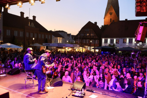 The location is the historic Eutin marketplace, which provides a very special atmosphere with its special ambience. In addition, there is the brewery opposite the stage, where great club concerts and sessions are held on several days after the program ends on the market square.